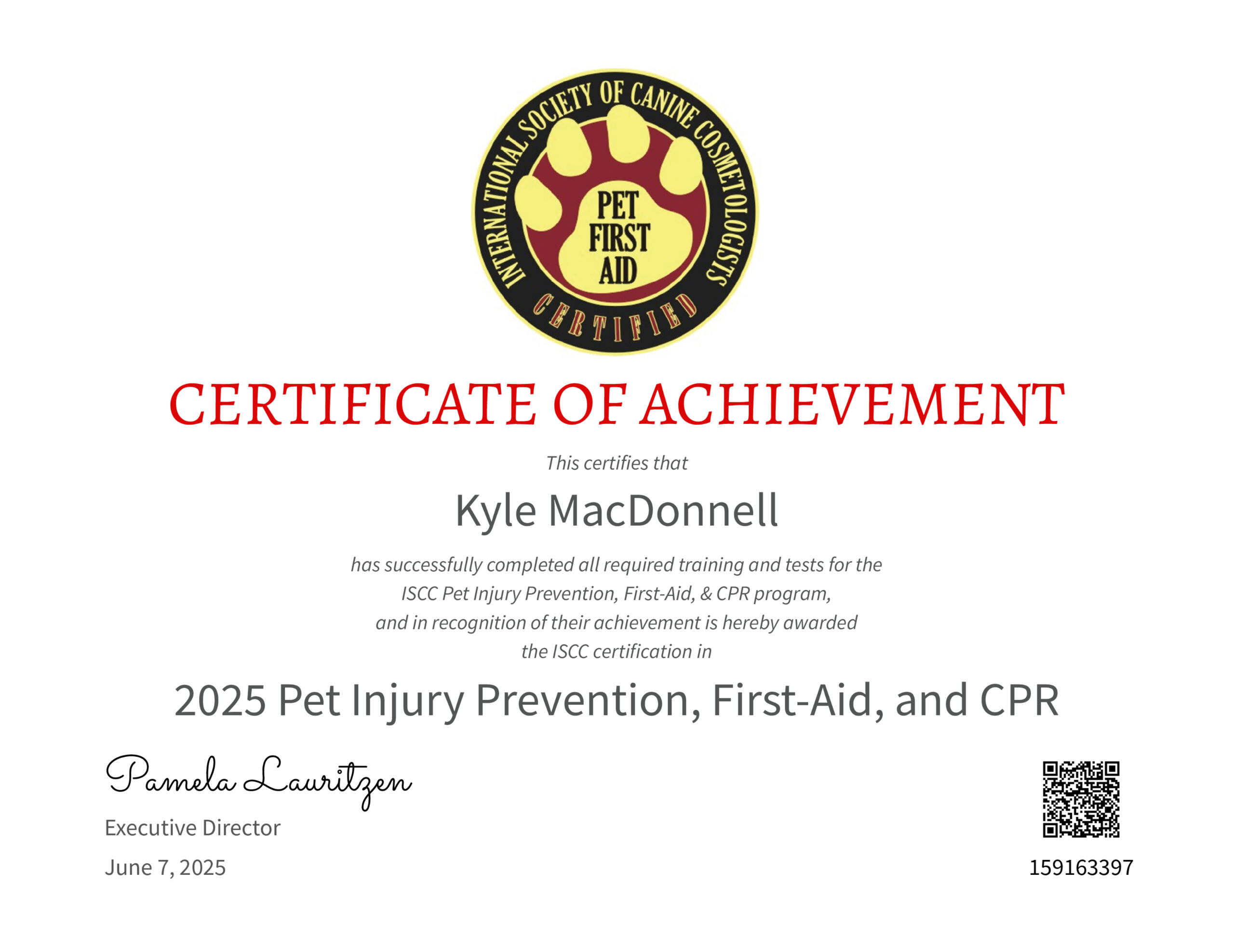 International Society of Canine Cosmetologists (ISCC) Certification - Pet Injury Prevention, First-Aid, and CPR (2025)