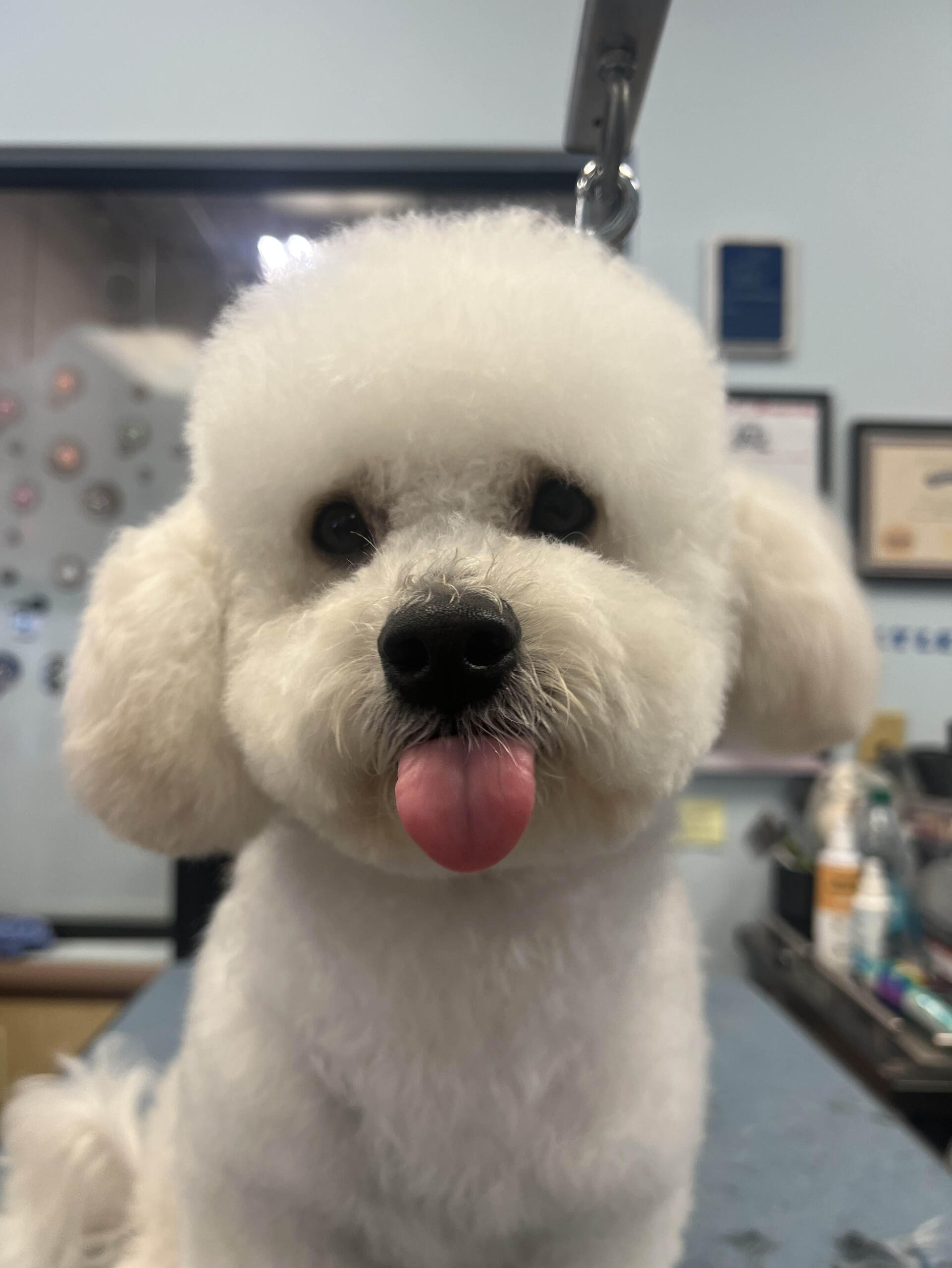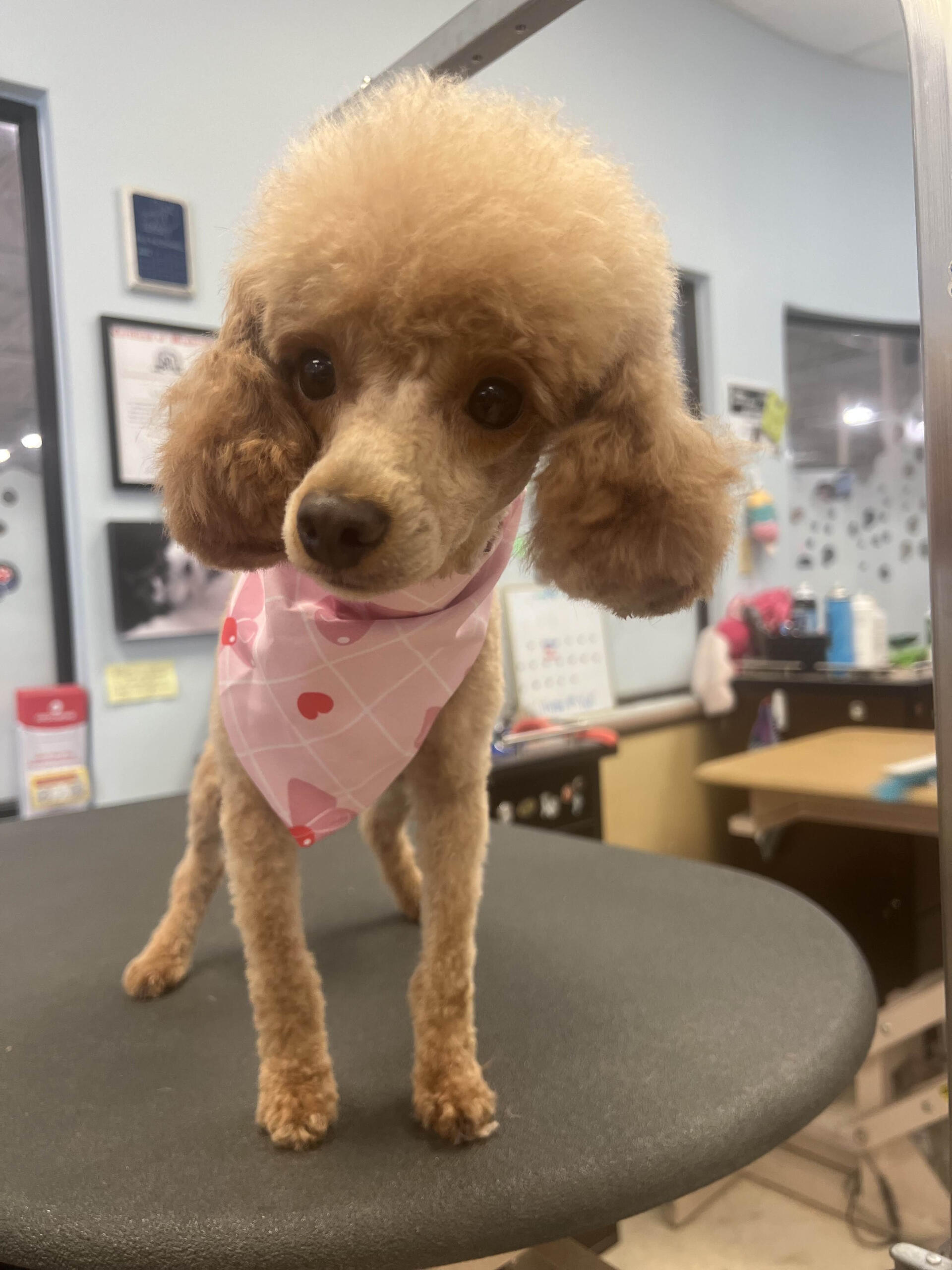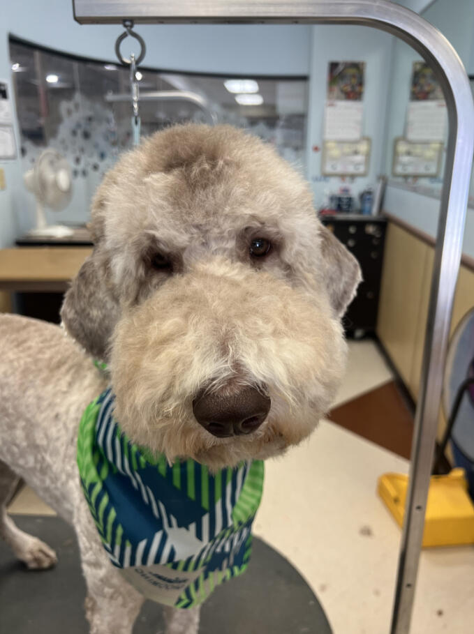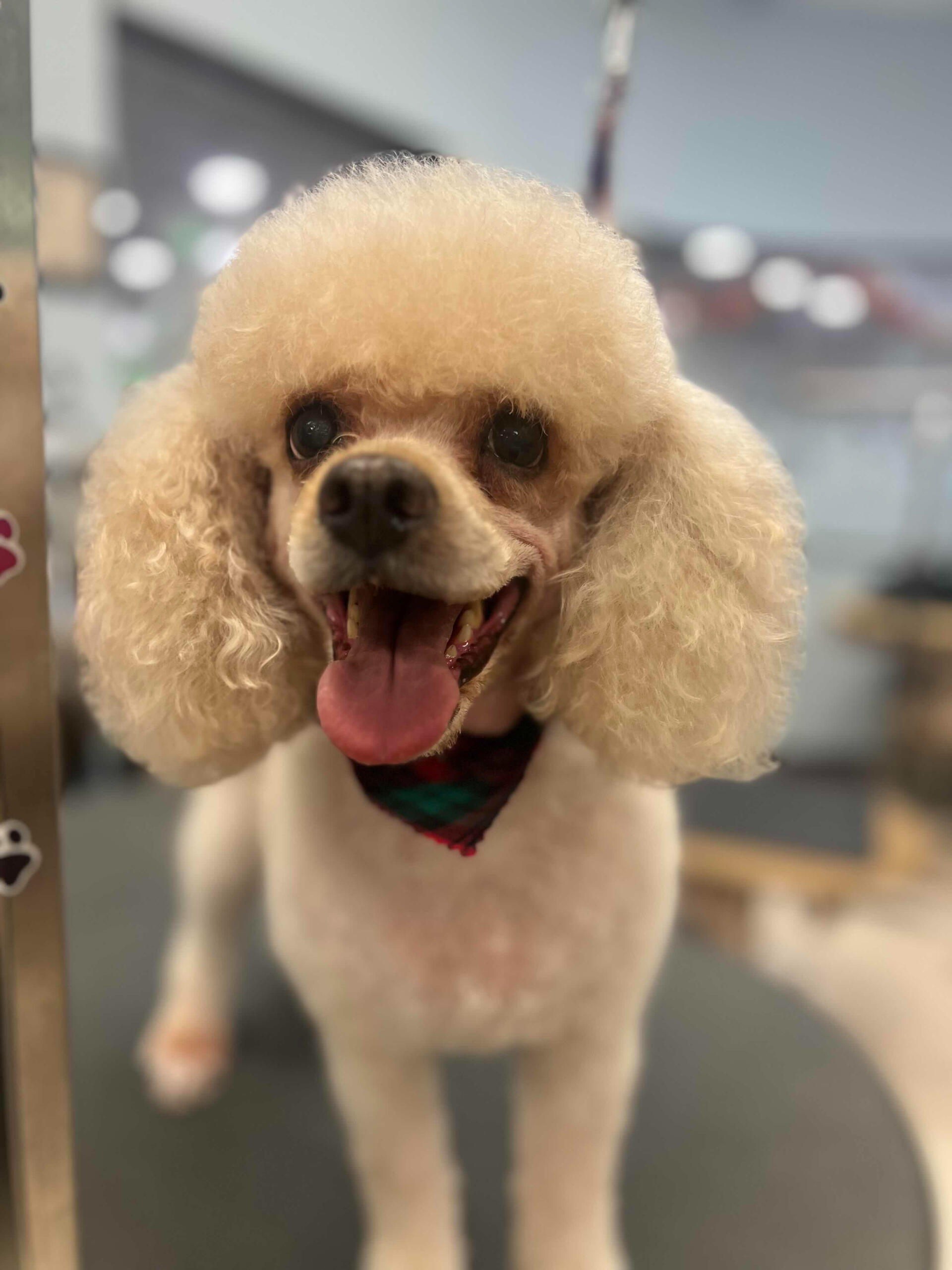 I started grooming after finding a stray Miniature Poodle that we would eventually adopt, who we named Hopper! Starting from home grooming, I eventually applied to a grooming apprenticeship at the salon I'm in now, so we have Hopper to thank for my career change!He's also been a wonderful practice dog, putting up with all sorts of goofy, unfitting haircuts. (I'm still sort of partial to the schnauzer skirt look, but don't tell him that.)