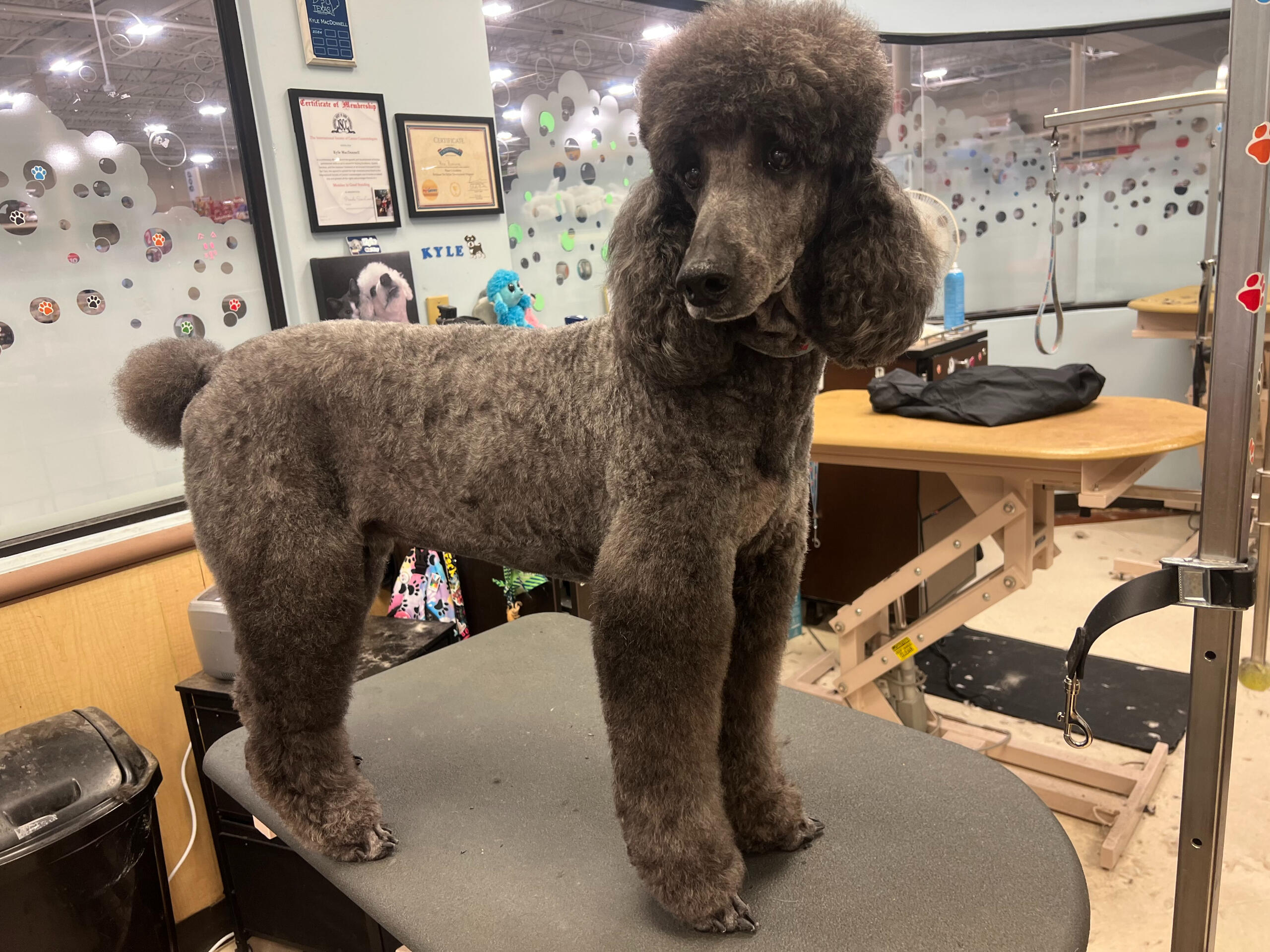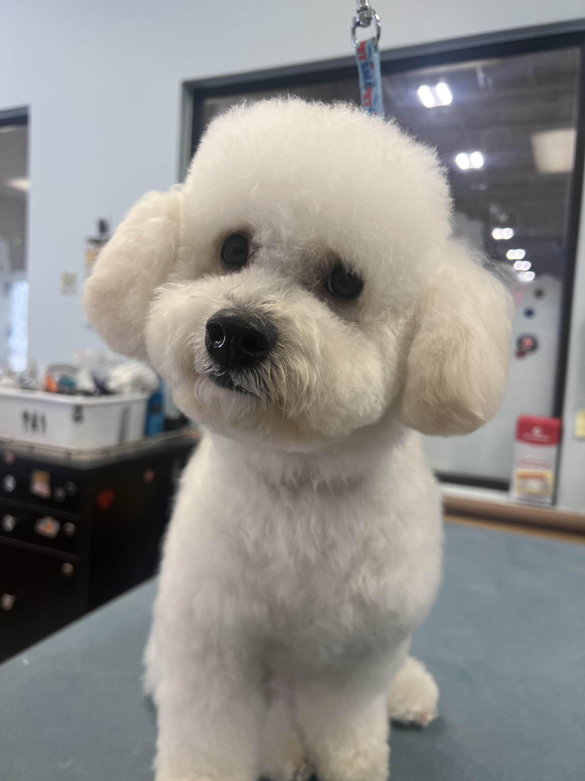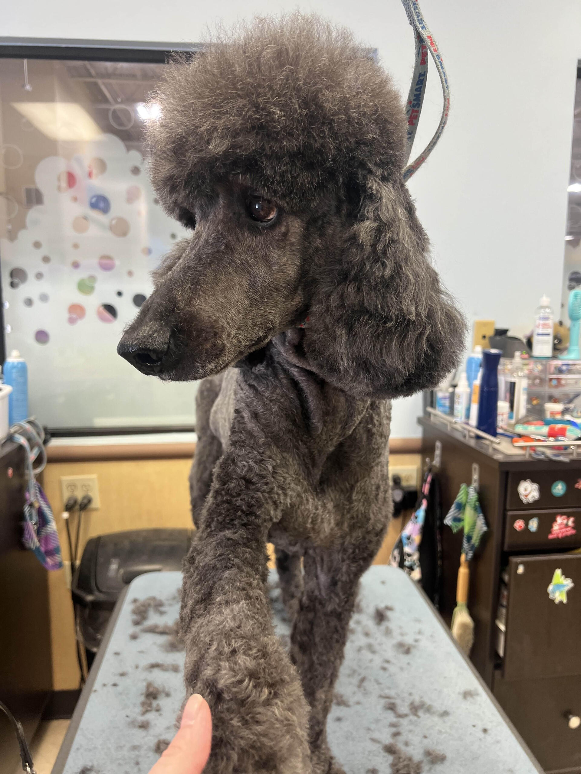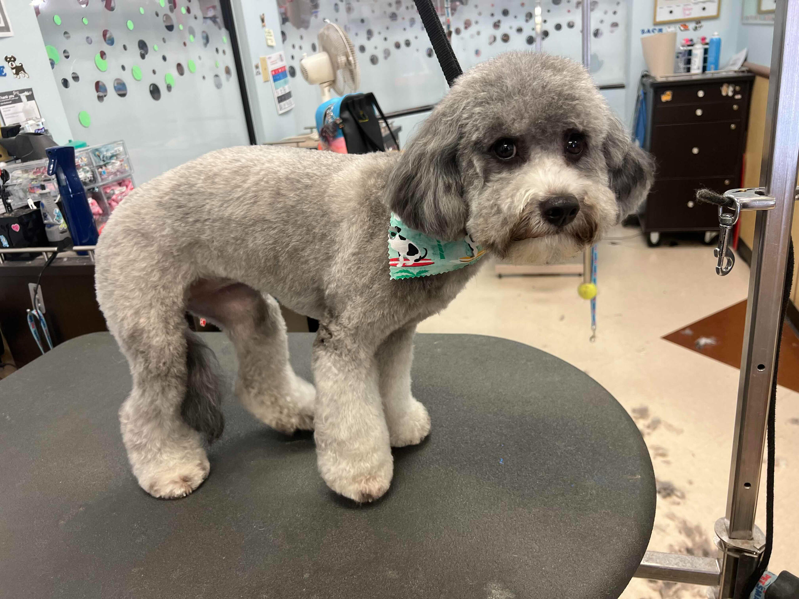 I started grooming after finding a stray Miniature Poodle that we would eventually adopt, who we named Hopper! Starting from home grooming, I eventually applied to a grooming apprenticeship at the salon I'm in now, so we have Hopper to thank for my career change!He's also been a wonderful practice dog, putting up with all sorts of goofy, unfitting haircuts. (I'm still sort of partial to the schnauzer skirt look, but don't tell him that.)