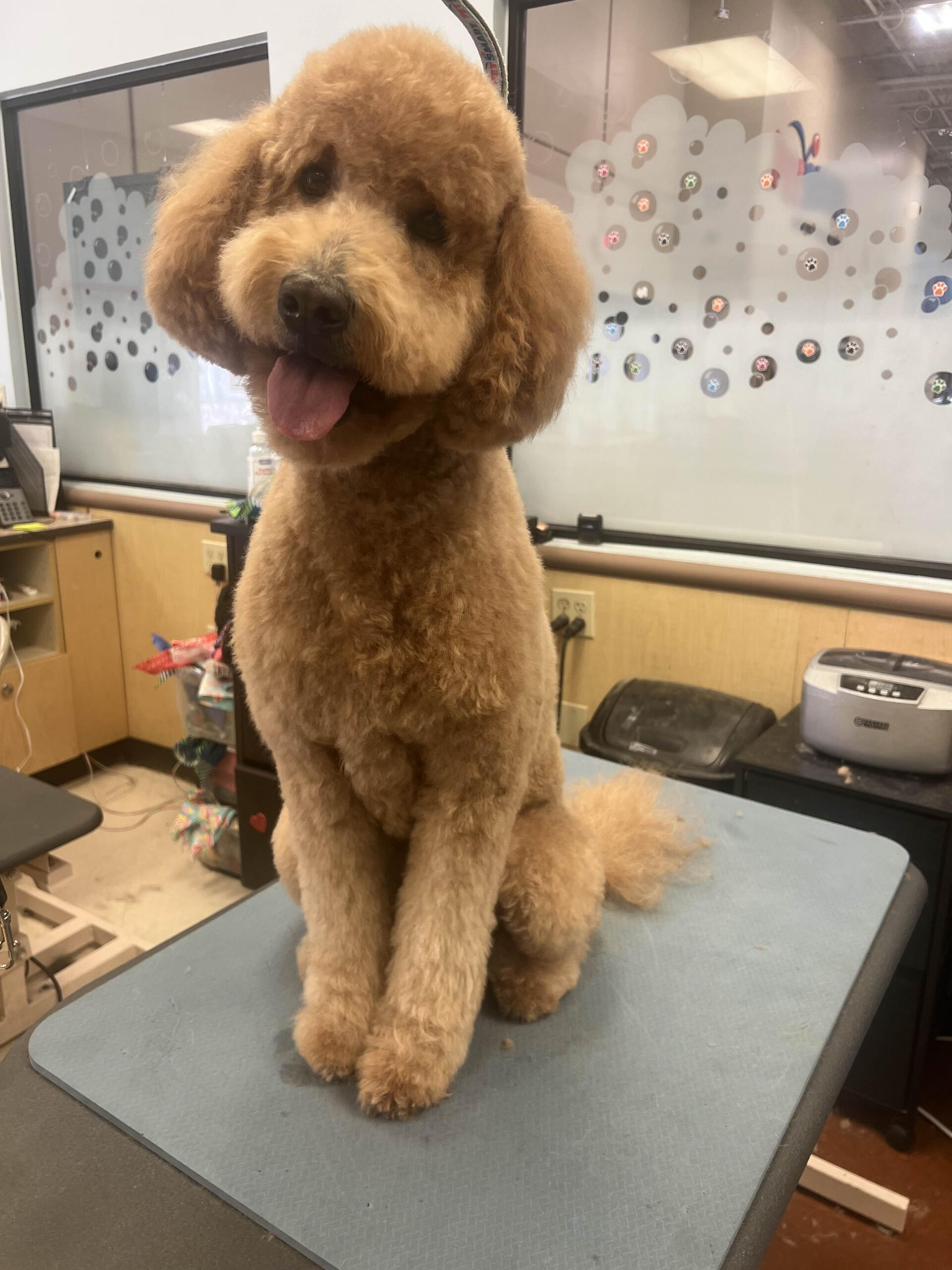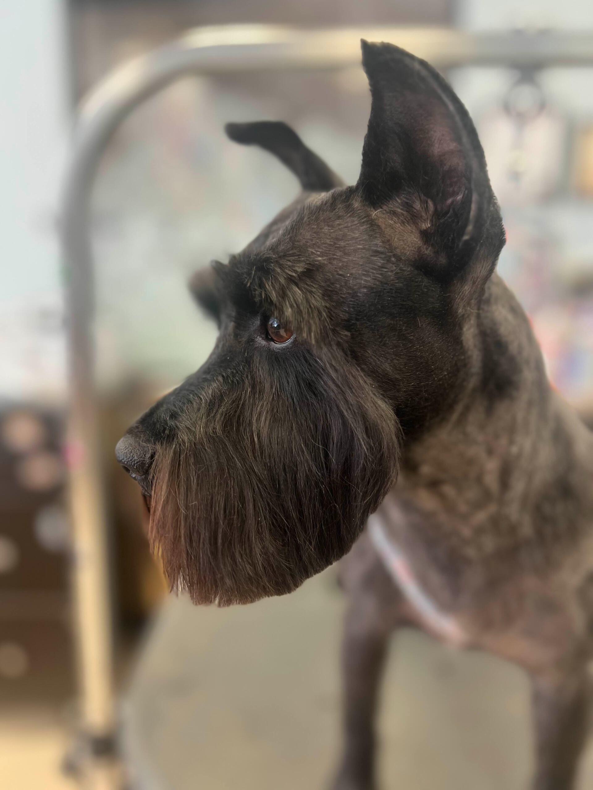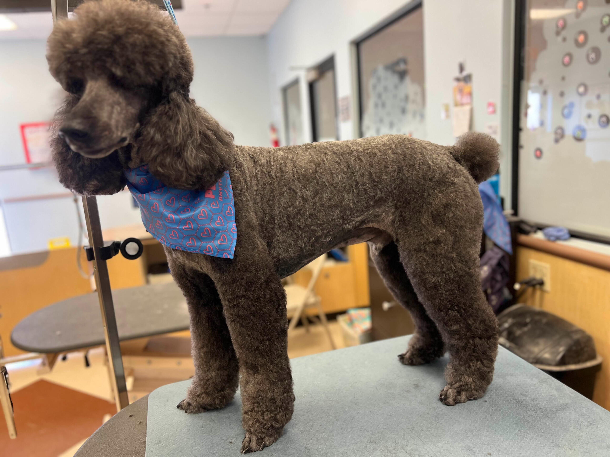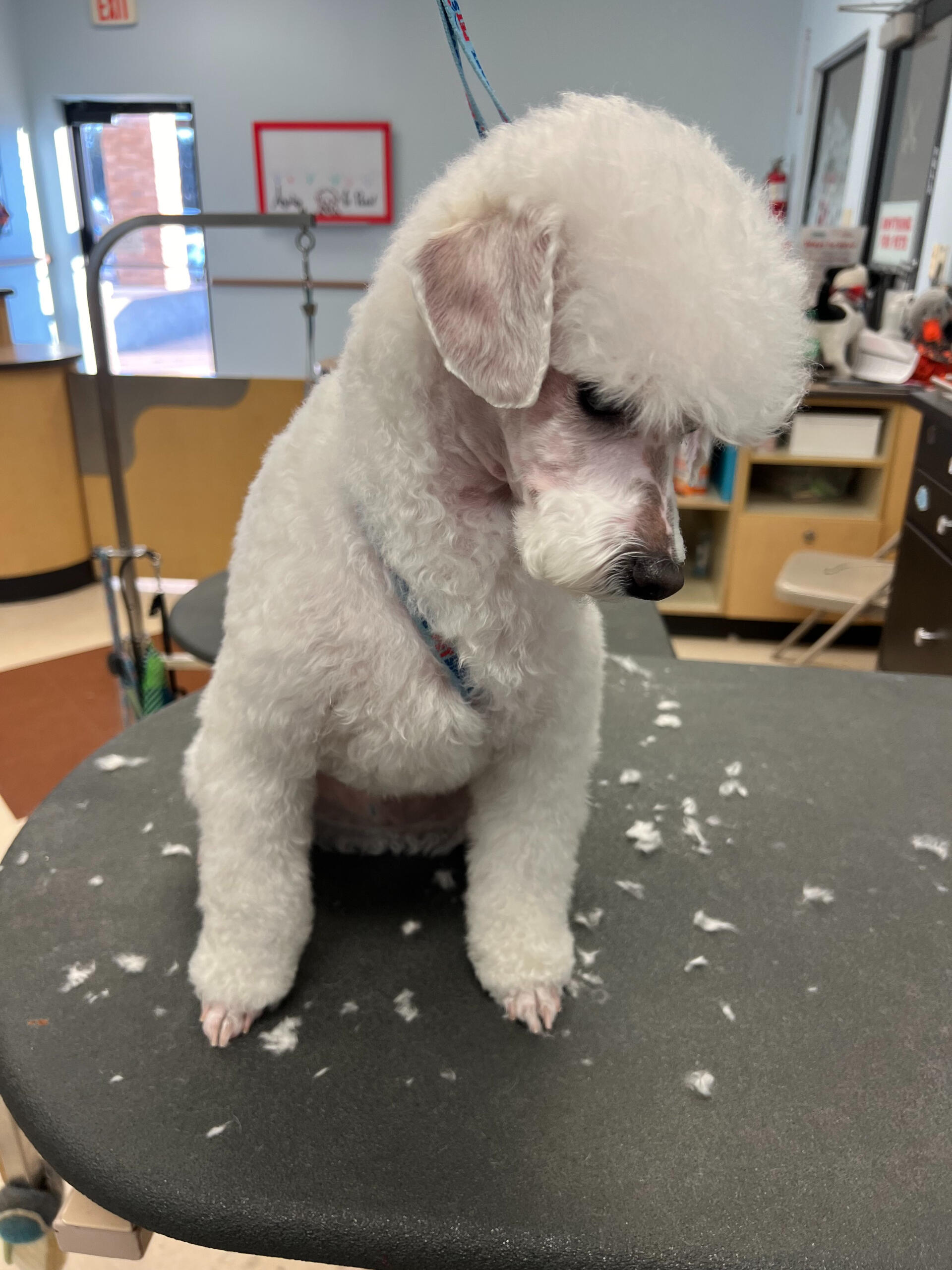 I started grooming after finding a stray Miniature Poodle that we would eventually adopt, who we named Hopper! Starting from home grooming, I eventually applied to a grooming apprenticeship at the salon I'm in now, so we have Hopper to thank for my career change!He's also been a wonderful practice dog, putting up with all sorts of goofy, unfitting haircuts. (I'm still sort of partial to the schnauzer skirt look, but don't tell him that.)